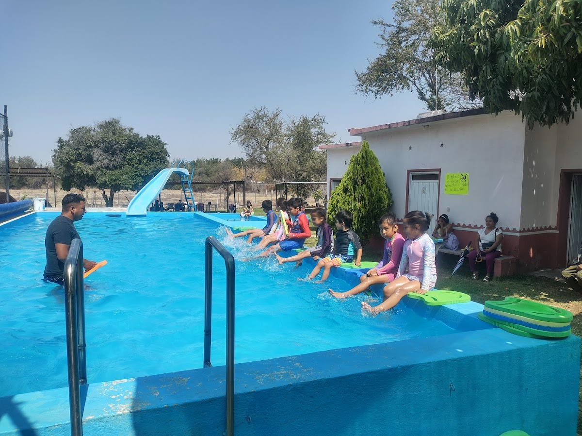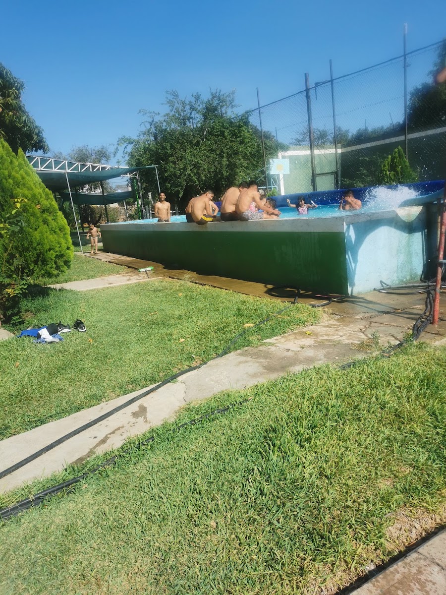 La verdad es un lugar súper bonito, con alberca calientita, hay lugar para acampar y tienes que traer tu propia casa de campaña o si prefieres algo más cómodo, puedes rentar una habitación es súper accesible, nada costoso con un chapoteadero y 2 albercas súper grandes, tiene una cancha grandísima, un espacio super grande además de cercanía con el centro, es muy tranquilo el lugar, puedes dejar tu toalla y amanece ahí donde la dejaste, ahí mismo ofrecen botana y dulces aparte de cosas para piscina y la gente es súper mega amable, muy cálido el lugar y muy bonito también, para hacer reservaciones, tienes que llamar y elejir el día y un depósito por adelantado, la verdad lo recomiendo muchisimo